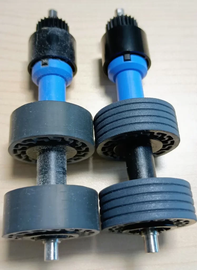 新旧の給紙ローラー(左側が使っていたもの。右側が新品。)